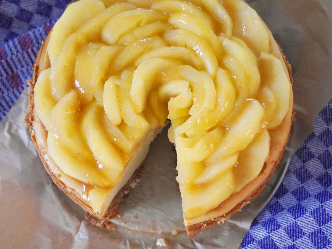 Die Äpfel auf dem abgekühlten Cheesecake verteilen und mit dem Apfel-Zimt-Sirup bestreichen. Im Kühlschrank komplett kaltstellen.