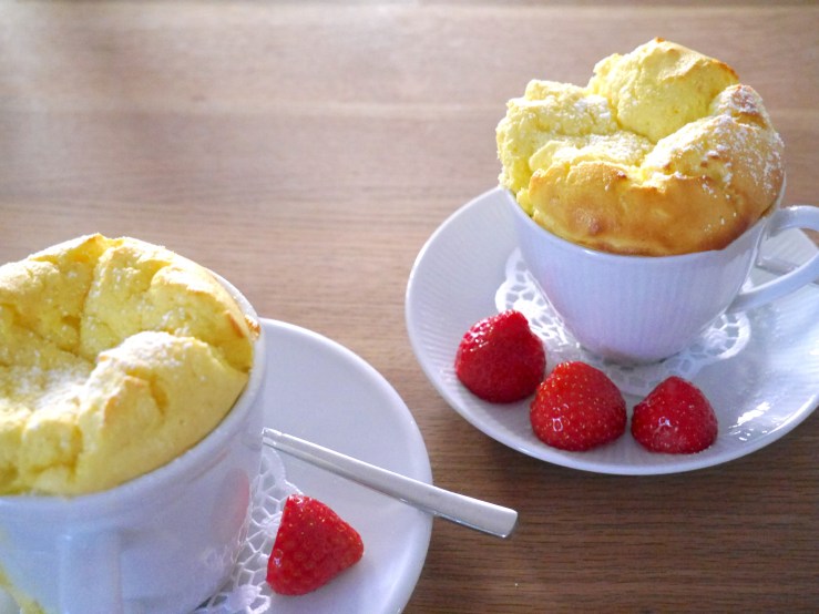 Die Tassen fetten und den Teig so einfüllen, dass der Teig noch 1,5-2 cm unterhalb des Randes der Tasse ist. Bei 160 Grad Umluft ca. 15 Minuten goldgelb backen und am besten warm servieren.