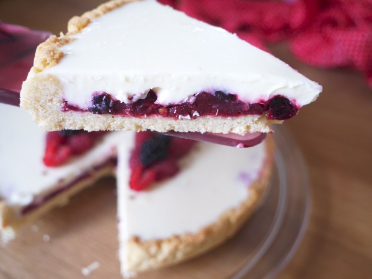 2. Für die Beerenfüllung in der Zwischenzeit die Beeren auftauen und den Saft auffangen. Den Saft mit der Stärke und dem Vanillezucker mischen und glatt rühren. Die Beeren in einem Topf erhitzen und die Stärkemischung zügig unterrühren. Unter ständigem Rühren 1 Minuten köcheln bis die Masse eindickt. Die Beerenfüllung sofort auf dem Mürbeteig verteilen und abkühlen lassen.