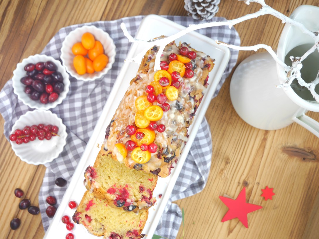 1. Für den Rührteig alle Zutaten zu einem geschmeidigen und homogenen Teig verrühren. Den fertigen Teig in eine mit Backpapier ausgelegte Kastenform (ca. 10 cm x 25 cm) füllen und im vorgeheizten Backofen bei 180 Grad Umluft ca. 50 Minuten backen. Vollständig abkühlen lassen und aus der Form lösen.