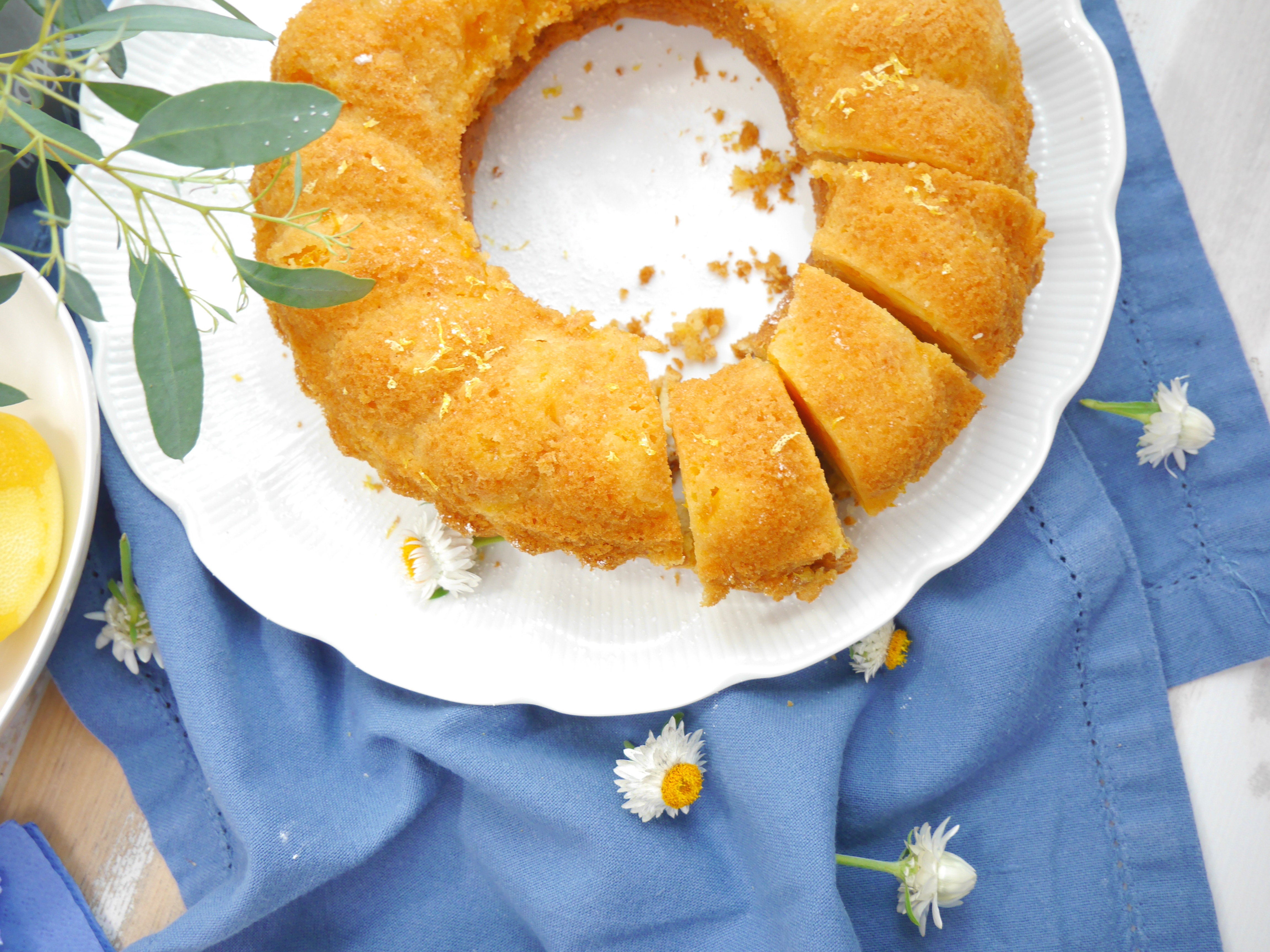2. Für die Deko den Guglhupf mit Puderzucker und Zitronenabrieb verzieren.