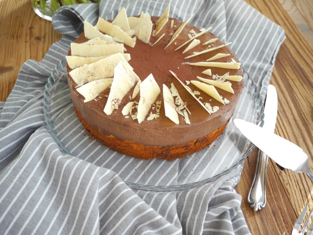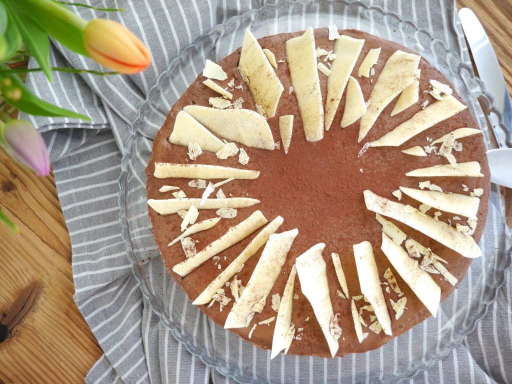 Die fertige Schokoladenmousse darauf geben und glattstreichen. Die Torte für mind. 4 Stunden oder über Nacht kühlen.