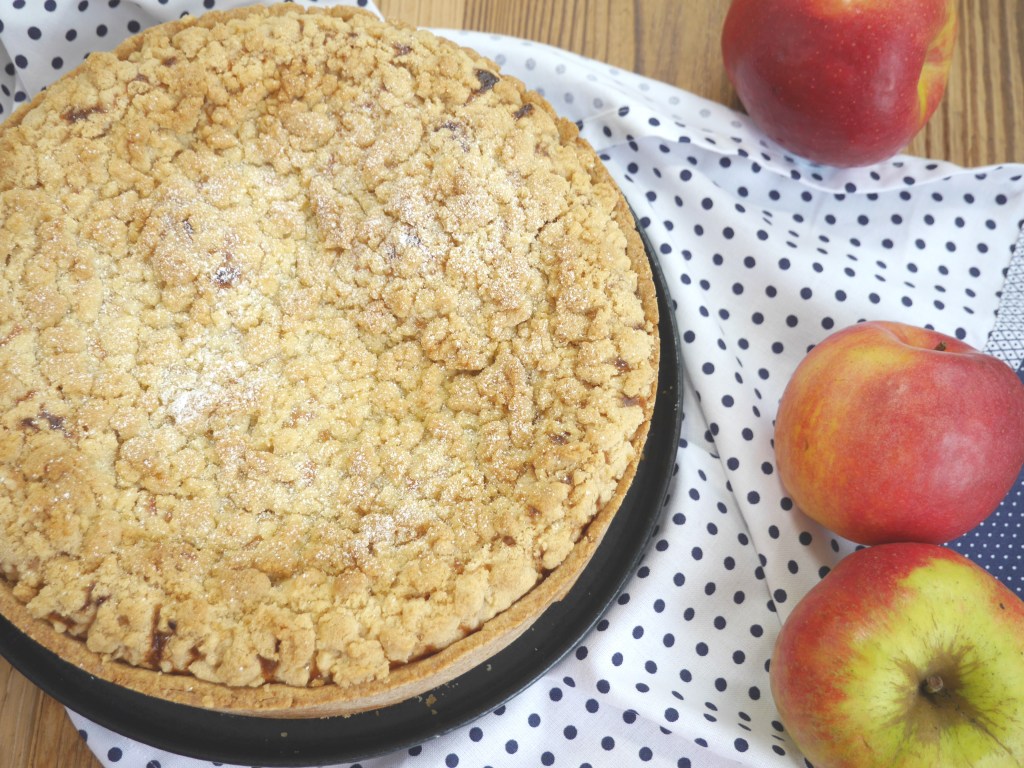 Zum Schluss die Streusel darüberstreuen und den Kuchen bei 180 Grad Ober-/ Unterhitze im vorgeheizten Backofen 70 Minuten goldgelb backen.