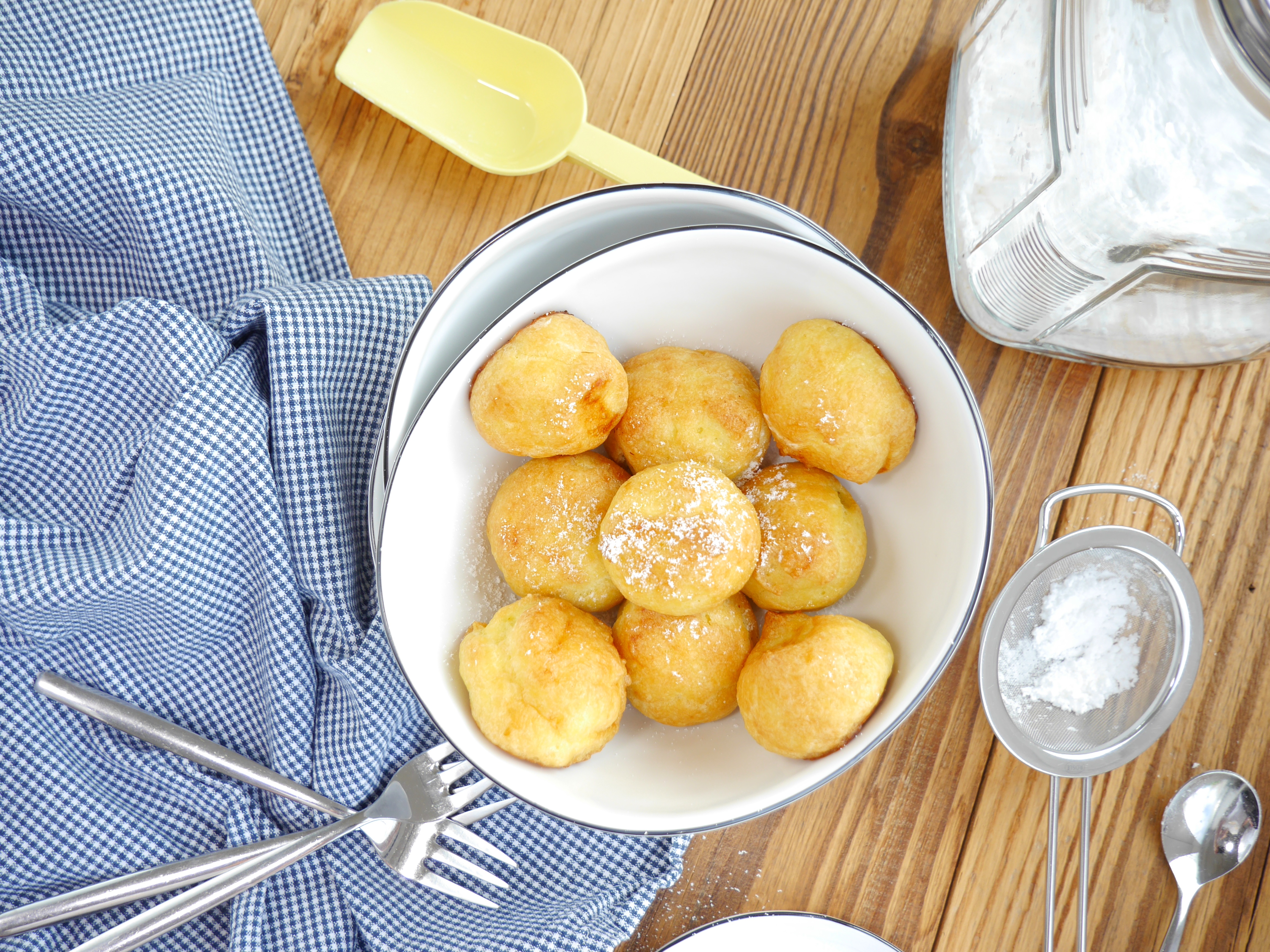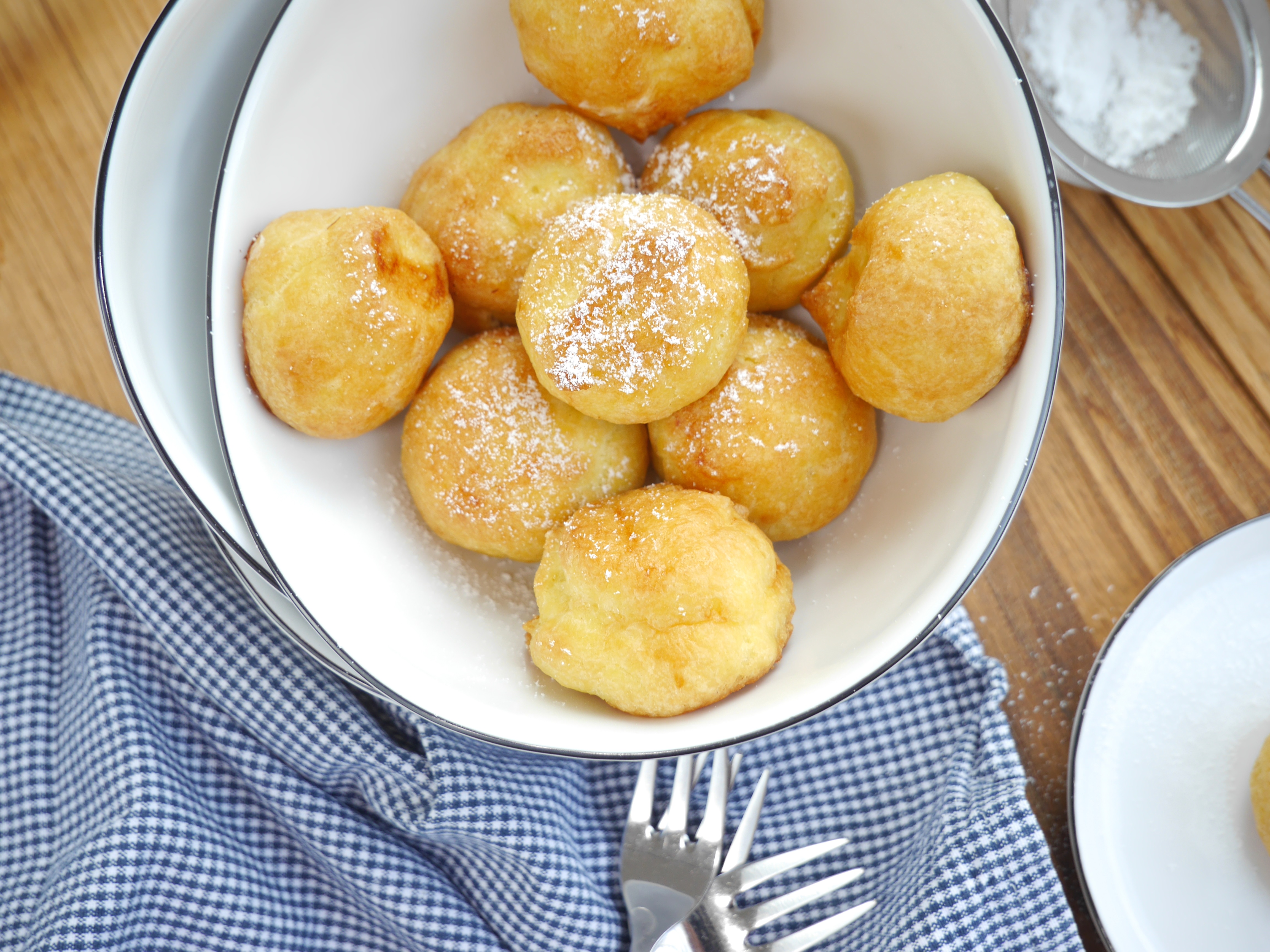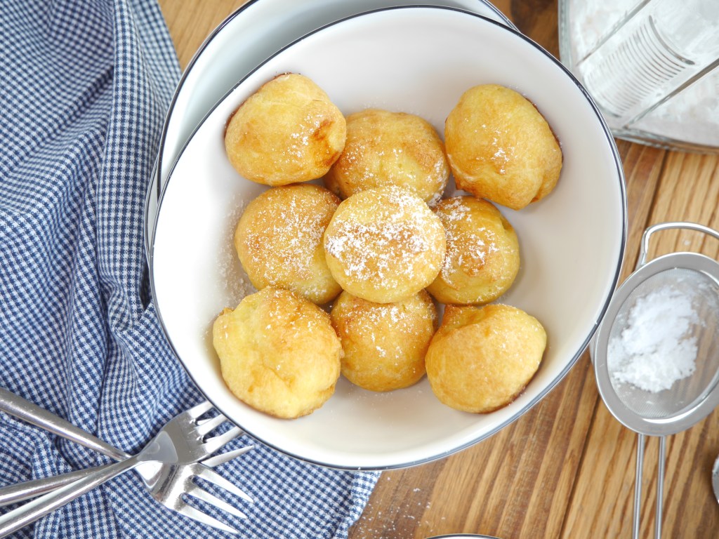 3. Für die Deko die Windbeutel mit Puderzucker bestreuen.
