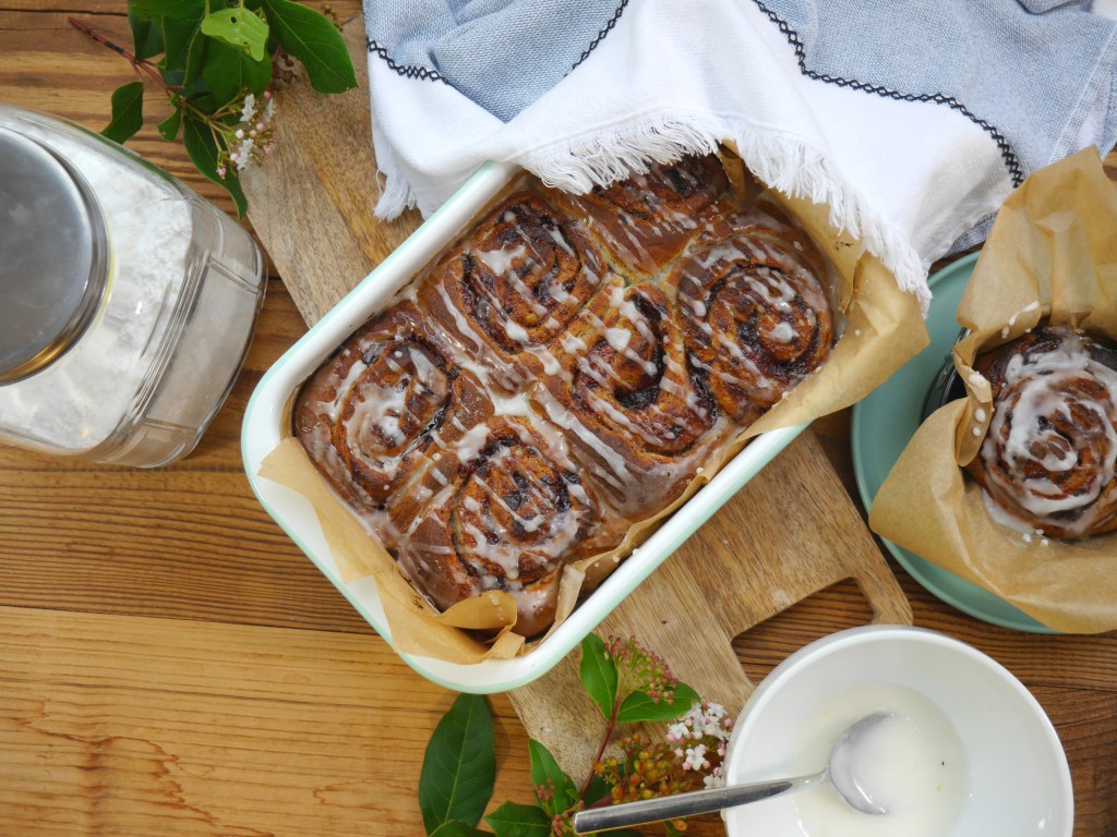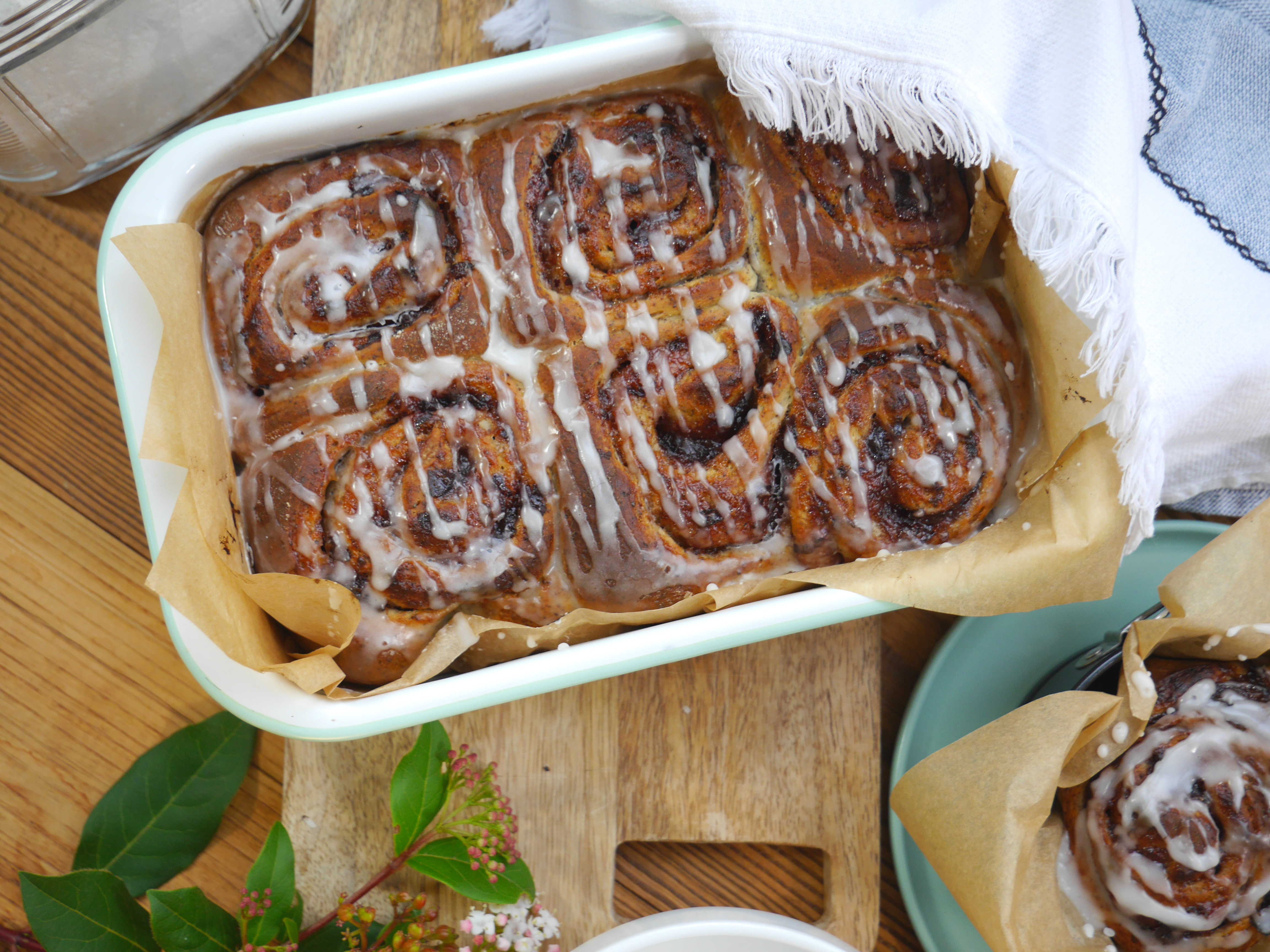 Die aufgegangenen Schnecken im vorgeheizten Backofen bei 180 Grad Umluft 20-25 Minuten goldgelb backen.