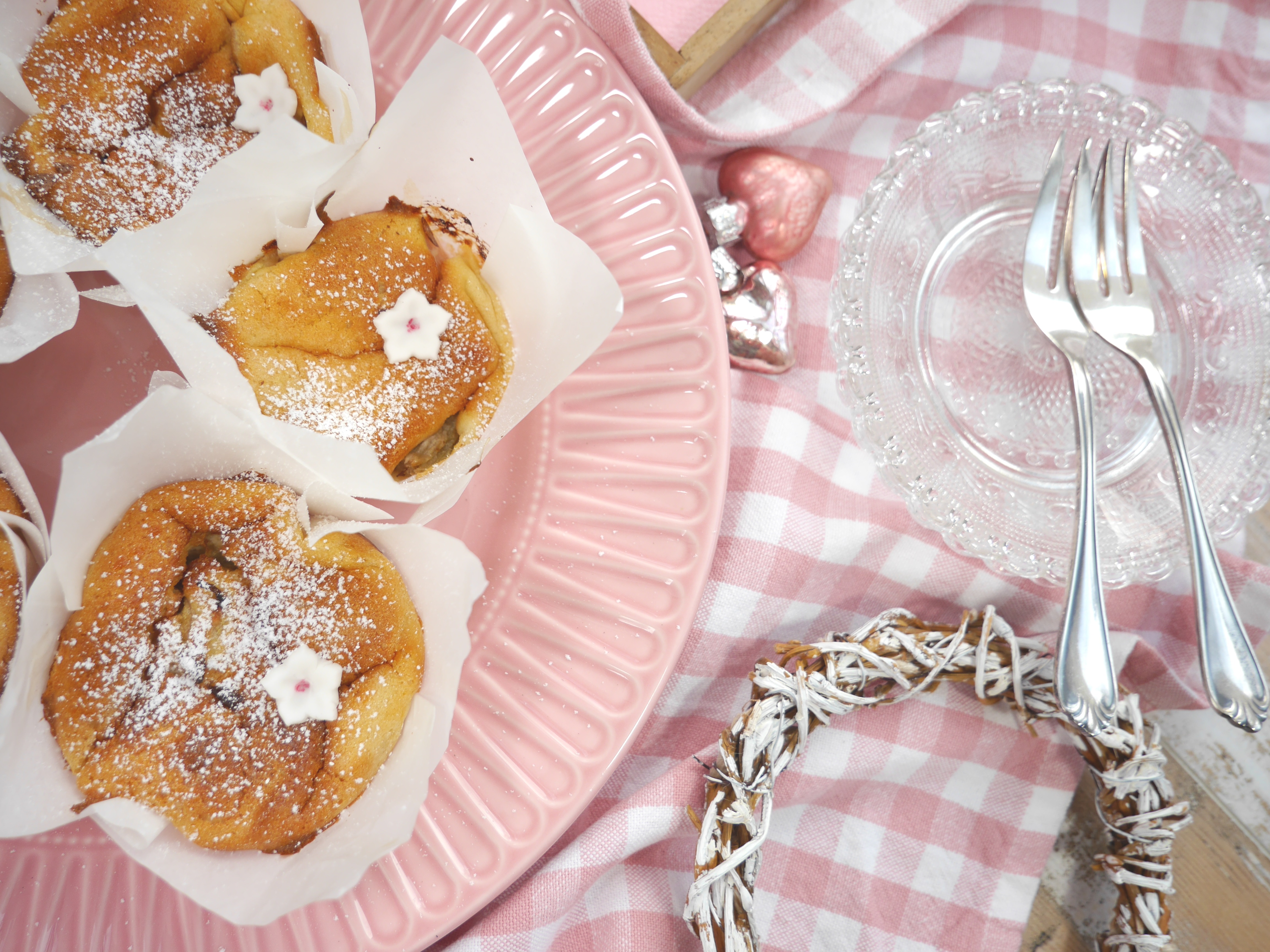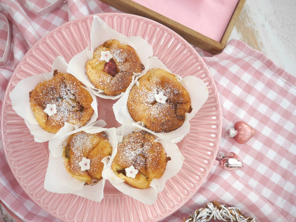 Die Muffinformen mit Muffin-Papierförmchen und dem Teig füllen. Im Backofen 30 Minuten goldgelb backen. Abkühlen lassen und mit Puderzucker bestreuen.