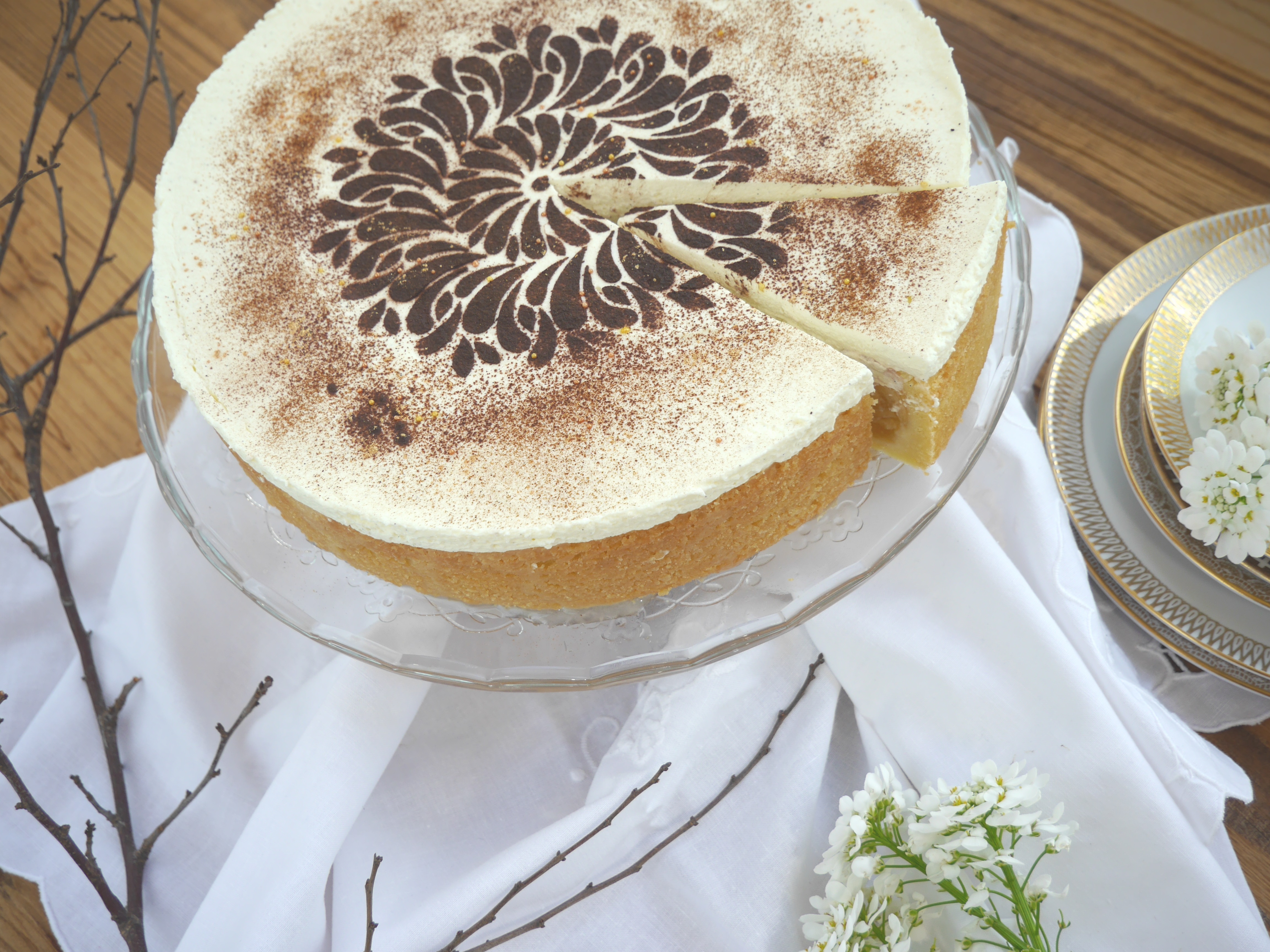 4. Für die Deko den Kuchen mit etwas Backkakao und Zimt nach Belieben verzieren.