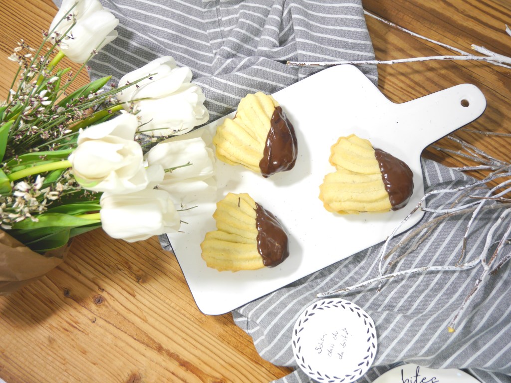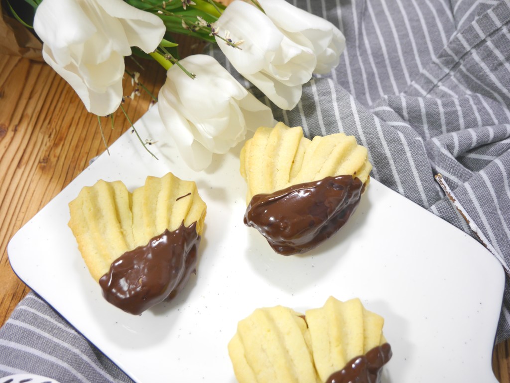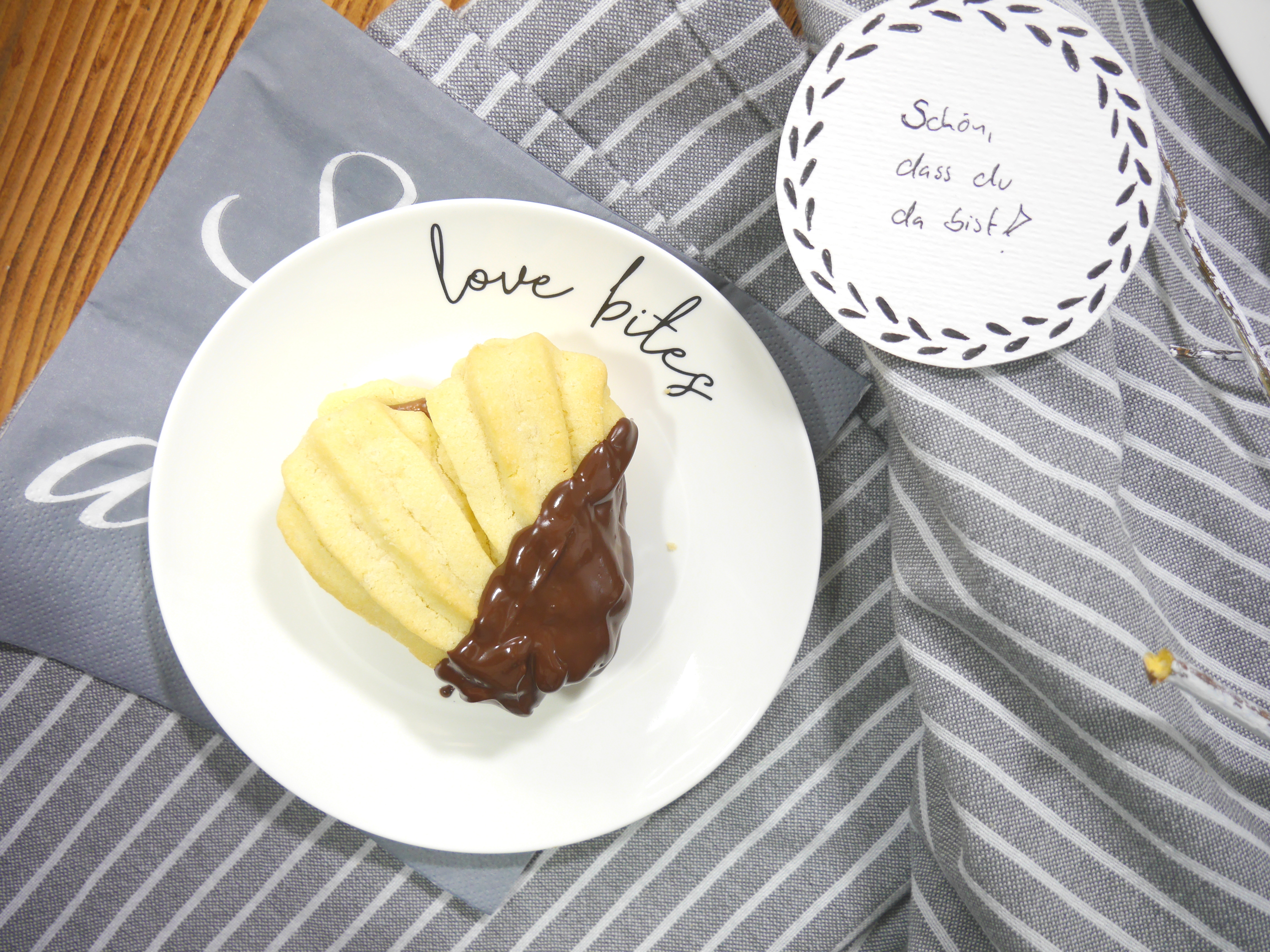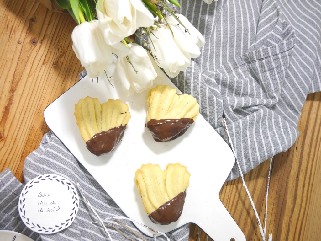 3. Für die Deko die Kuvertüre langsam über dem Wasserbad schmelzen und jedes Herz damit dekorieren. Einige Minuten abkühlen lassen, bis die Kuvertüre fest ist.