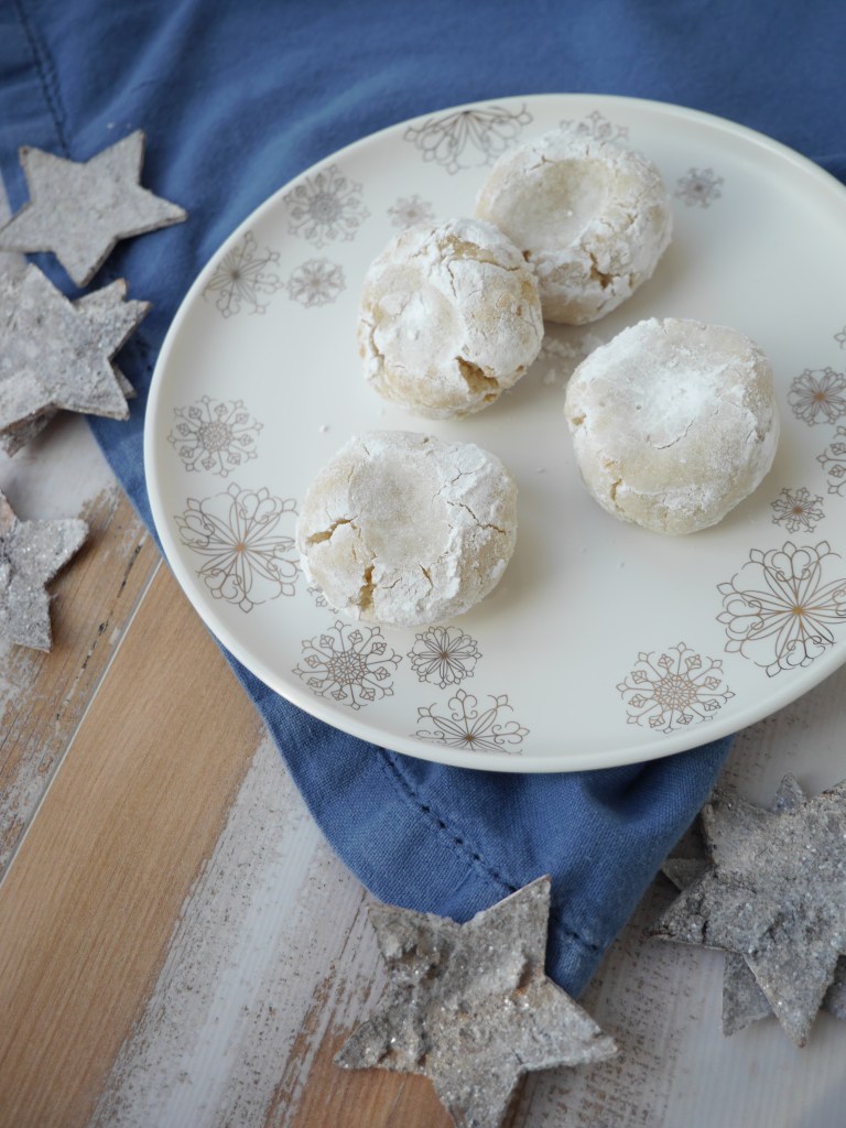 2. Für den Puderzucker-Mantel den Puderzucker in eine Schüssel sieben und jede Mandel-Kugel darin wälzen, sodass sie lückenlos mit Puderzucker ummantelt sind.