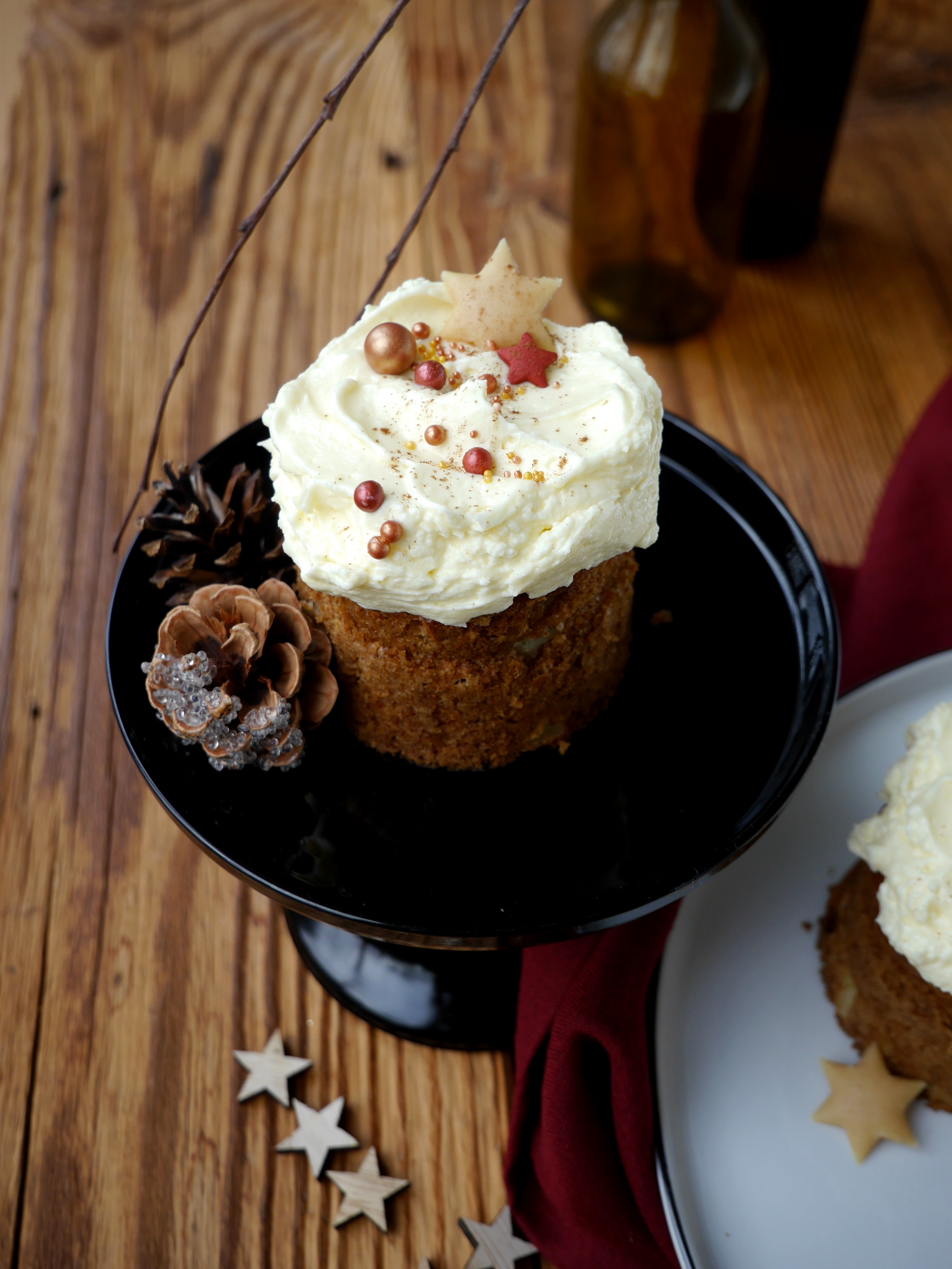 1. Für den Rührteig die Butter mit dem braunen Zucker und dem Salz schaumig schlagen und das Ei dazugeben. Das Mehl mit dem Backpulver und den Gewürzen mischen und unter die Buttermischung rühren. Zum Schluss die Milch zum Teig geben und kurz mischen.